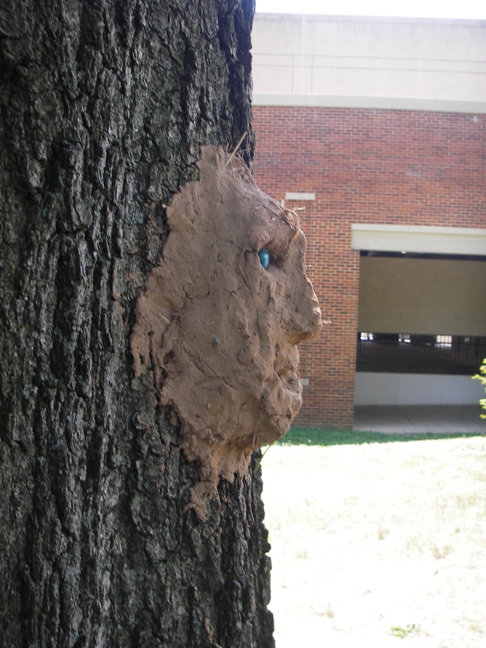 People ask me what is a “sandy mix” They usually want a recipe like one part clay and two parts sand. I can’t give them a recipe because every part of the earth differs from every other part of the earth. In one place 2 to 1 will give you a sandy mix; in another place it will give you useless material that will not hold together. The only thing I can say is that you need to develop a feeling for the material. I will say one thing, though: if you can take a blob of your material and stick it up on a tree and sculpt a face into it as in Fig. 6, that is a not a sandy mix, that is a clay rich mix.